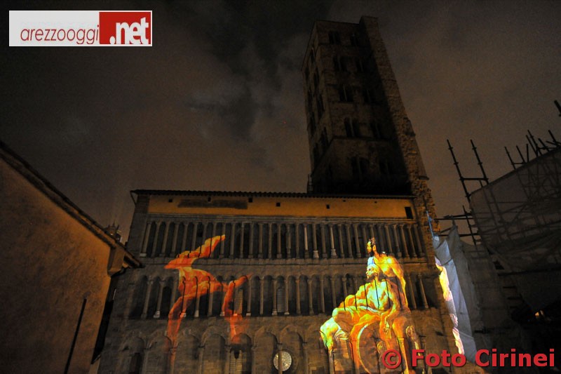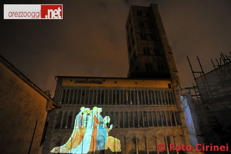 LE IMMAGINI DELLA PROIEZIONE DI "FORME DI LUCE" SULLA FACCIATA DELLA PIEVE