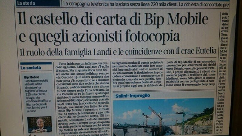 Un lungo articolo a firma di Massimo Sideri fa il punto, sull'edizione di oggi del Corriere della Sera, su quello che viene definito dal giornalista l'intreccio tra Eutelia e Bipmobile. Circostanze dettagliate, riportate sul quotidiano, cercherebbero di fare luce sugli azionalisti di Bip Mobile che sarebbero gli stessi, scrive Sideri, di Eutelia ovvero la famiglia Landi. Terra in serata ha replicato con un comunicato che pubblichiamo per intero.