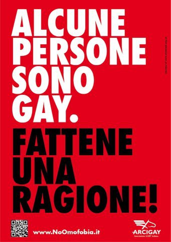 Il 17 maggio si celebra la Giornata internazionale contro l'omofobia e la transfobia. In questa data ricorre la rimozione dell'omosessualità dalla lista delle malattie mentali da parte dall'Organizzazione Mondiale della Sanità , avvenuta nel 1990. Arcigay Arezzo continua la battaglia contro l'omofobia e per una cultura delle differenze con: incontri nelle scuole, distribuzione di materiale di sensibilizzazione, videoclip girati in centro città , feste, rassegne teatrali, cineforum e momenti di aggregazione. "Dal 2007 la giornata è istituita ufficialmente dall'Unione Europea come momento di riflessioni e azioni per denunciare e lottare contro ogni violenza fisica, morale o simbolica legata all'orientamento sessuale o all'identità di genere - ricorda la presidente Cristina Betti che continua - Chimera Arcobaleno anche quest'anno ha aderito alla campagna nazionale di Arcigay per il 17 maggio, affiggeremo oltre 100 manifesti in tutto il comune di Arezzo e chiederemo a enti ed esercizi commerciali del centro di dire No all'omo e transfobia esponendo le locandine e i volantini con lo slogan: "Alcune persone sono gay, lesbiche, bisex o trans. Fattene una ragione" . Non solo campagne pubblicitarie ma anche integrazione e promozione di una cultura delle differenze nel mondo dello sport, attraverso il teatro e con incontri nelle scuole, in particolare giovedì 16 maggio una delegazione di Arcigay Arezzo incontrerà una classe di studenti americani della University of Oklahoma in Arezzo sul tema "Activism and Leadership", momento importantissimo di scambio e confronto con una realtà molto diversa da quella italiana. Nel pomeriggio di giovedì inizia la distribuzione del materiale promozionale poi l'appuntamento è dalle 20 in poi con "AperitiViAmo a la Folie" il momento di aggregazione di Chimera nella nuova location Folie Cafè in via Madonna del Prato, 100. Gli appuntamenti organizzati dai volontari di Arcigay Arezzo proseguono domenica 19 con il cineforum LGBTQI* "Queer Bill" che prevede la proiezione, riservata ai soci, del primo film di Ferzan Ozpetek "Hammam" presso il Centro Giovani di Villa Severi dalle 21,15. Inoltre sabato 25 maggio si chiude la stagione di feste LGBT-friendly Why Not¿ con "La Dolce Vita" presso il circolo Arci Karemaski (zona Pratacci) e vedrà come ospite speciale Alessio Cavello - Mr. Gay Italia 2012, poi giovedì 30 maggio sarà la volta del secondo appuntamento con la rassegna teatrale NormalMente presso lo SpazioSeme dove andrà in scena lo spettacolo "Il diario di David" di e con Roberto Ciofini, Marco Cucciniello e Mirco Sassoli dai racconti di David Sedaris.