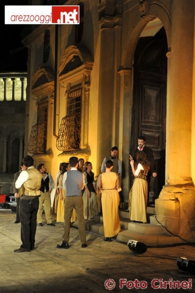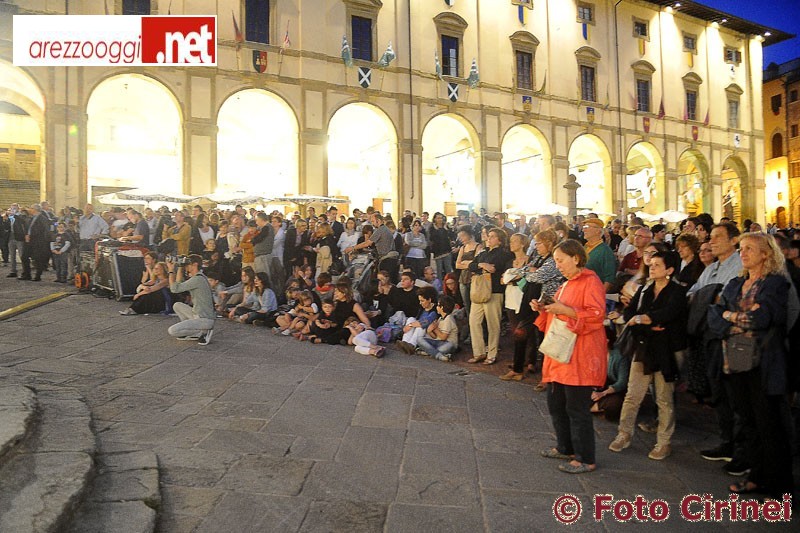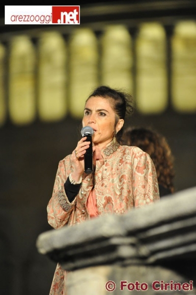 Abito di un rosa "caldo", soprabito fiorito con inserti oro, capelli raccolti, tacchi alti. Ed un piglio ed una determinazione unici. Liletta Fornasari, di fronte ad una piazza Grande ricca di pubblico, ha presentato il 750esimo della Fraternita. Ed anche l'istituzione stessa definendola "unica" e seppure il rettore venga nominato dal sindaco "La Fraternita è autonoma nello statuto e negli intenti" ha ribadito. Poi, raccogliendo decine di applausi, ha sottolineato lo scopo di questa importante istituzione "Al centro sta la città , che deve essere curata e pulita. Basta poco". Perchè ha sottolineato di essere pienamente convinta delle potenzialità di Arezzo, che ha avuto ed ha menti e cervelli di valore. Ad applaudire gli assessori Macrì, Dringoli, Magi, Bertelli. Presente anche l'arcivescovo Fontana. Spazio quindi alla rappresentazione tra musica e teatro dedicata a Gnicche, il brigante galantuomo. Luci e costumi che hanno reso il terrazzo del Palazzo di Fraternita ancora più suggestivo.