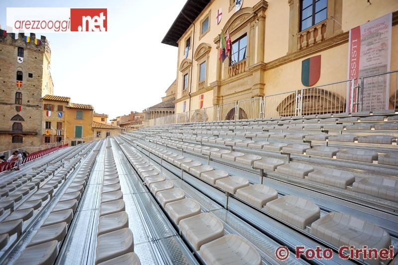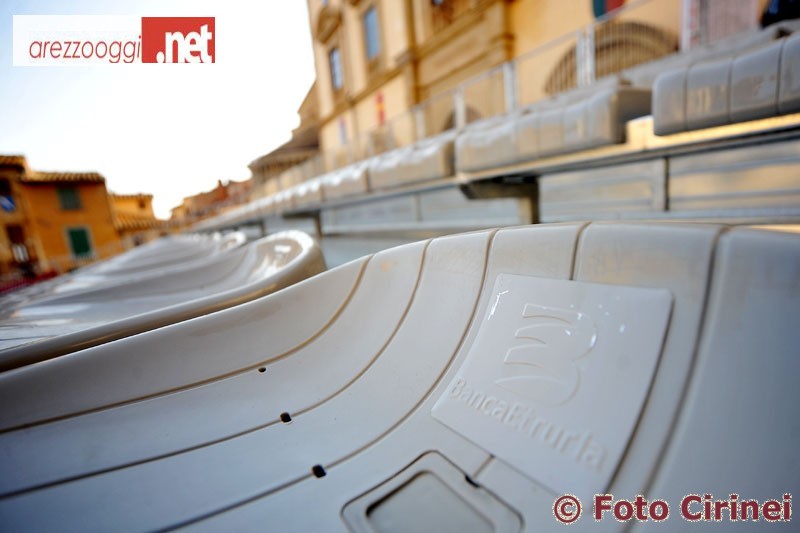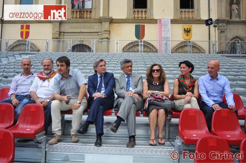 E' stata inaugurata ufficialmente stamani la nuova tribuna A allestita in piazza Grande per la Giostra del Saracino. E' stata realizzata con il fondamentale contributo di Banca Etruria ed è migliore, rispetto alla precedente, sia in termini di sicurezza che per il fatto di avere più posti.