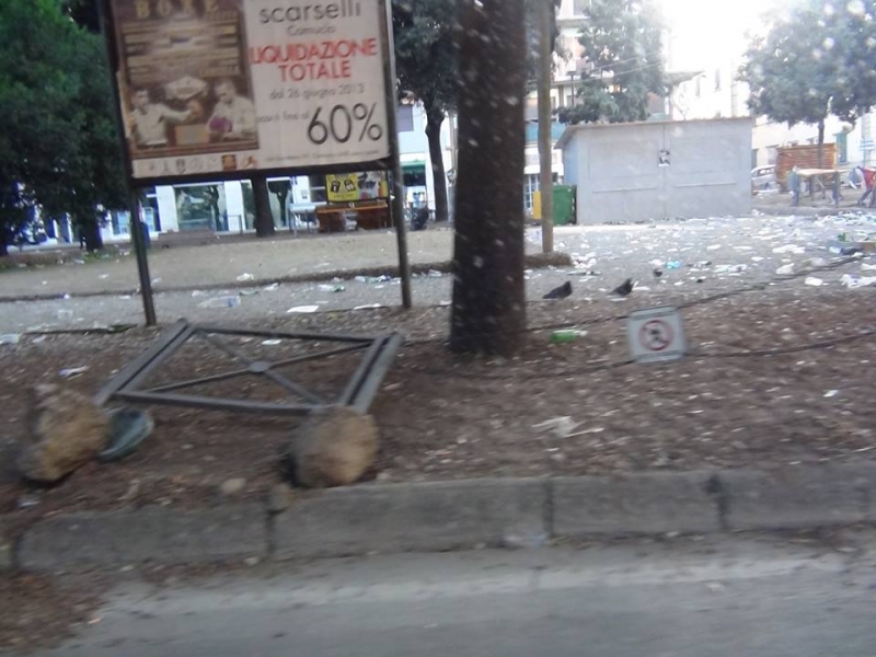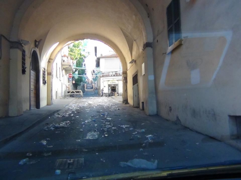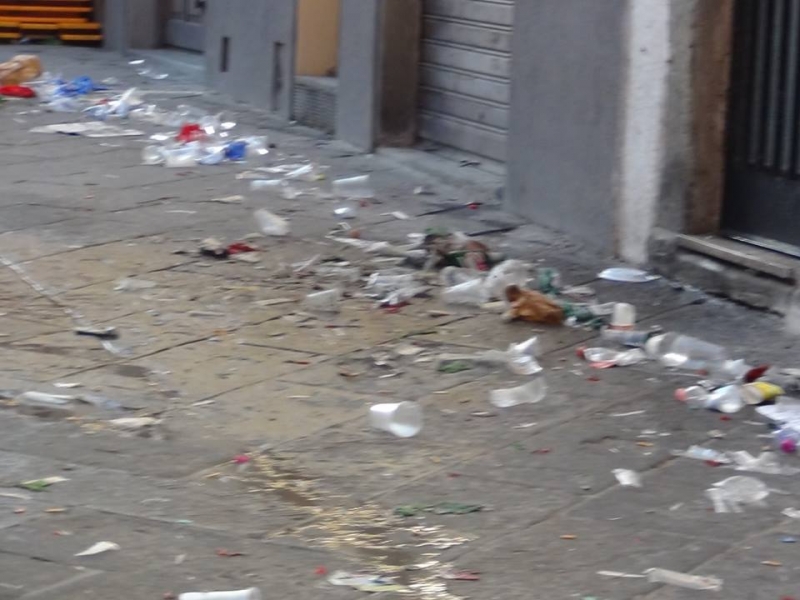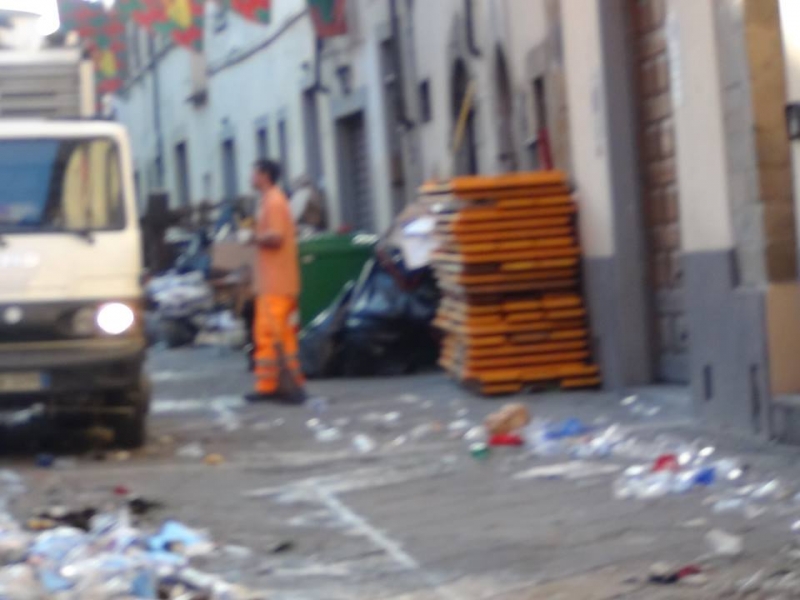 Alzarsi di buon ora stamani, soprattutto per chi abita in centro, e nelle zone dei quartieri, non è stata affatto una bella idea. Infatti le strade, i giardinetti, i marciapiedi erano letteralmente ricoperti di bicchieri di plastica, cartacce, bottiglie in vetro abbandonate, anche sul ciglio della carreggiata. Unica zona ad essere stata rimessa perfettamente apposto prima dell'arrivo del giorno quella di San Lorentino. Le immagini raccolte dal Partito delle Cicale raccontano una nottata di bagordi ed anche, forse, di poco rispetto sia per la città sia dello spazio in cui le cene vengono fatte e quindi dei quartieri stessi. E già all'alba si vedevano non solo addetti alla nettezza urbana ma anche aretini, probabilmente dei quartieri, scopa alla mano o chinati a terra a raccogliere quanto abbandonato durante la serata. Lungo viale Michelangelo una transenna è stata divelta, e nei giorni scorsi è stato danneggiato un dipinto del '400 in un'edicola all'interno di Colcitrone. Senza parlare dell'opera di Icastica, sotto ai Portici, che in nottata è stata sradicata dal piedistallo. Forse si dovrebbe ribadire che per divertirsi tutto ciò non serve.
