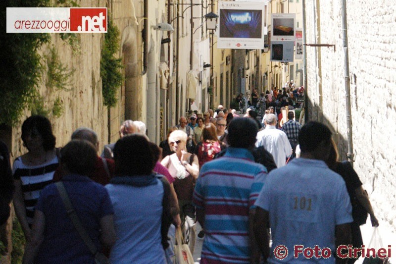 Pittori lungo il ciglio della strada, con in testa la coppola, un pò inclinata che fa tanto bohemien. Trampolieri, esibizioni musicali in strada, tra le atmosfere del circo, del teatro e di un atelier d’arte e moda. Le note di canzoni francesi che risuonano tra gli antichi palazzi. Spettacoli di magia e, dalla trasmissione “Italia’s got talent”, lo straordinario mimo non udente Stefano Orselli. Fino al 1° settembre la mostra fotografica dedicata alle opere di “Icastica”. Angoli dove bere o fare uno spuntino e romantici negozi di abiti, libri e gioielli, fiori e trouvailles. No, non siamo a Parigi, ma esattamente in via Madonna del Prato, che in questa calda domenica di fine giugno è stata trasformata in una piccola Montmartre con la manifestazione "Una strada per l'arte". Un’iniziativa, organizzata da Confcommercio con il patrocinio del Comune di Arezzo e il coinvolgimento di tutti gli operatori economici, che già dalle prime ore della mattinata ha registrato un boom di presenze. Infatti sono stati accontentati sia i grandi che i piccini, quest’ultimi coinvolti in attività ludiche e nel truccabimbi. Insomma l’idea è stata vincente, non c’è alcun dubbio. Le iniziative che animano le strade della città stanno prendendo sempre più capo. Perchè è sempre maggiore la voglie di stare insieme, di condividere spazi, opinioni, divertimento. In effetti il sapore della comunità, del sedersi allo stesso tavolo, di essere coinvolti insieme agli altri negli ultimi anni era andato perduto. E si parlava di città, comprese Arezzo, morte, noiose. Ebbene, quello realizzato anche oggi in via Madonna del Prato è l’ennesima dimostrazione che Arezzo è una città vitale, basta trovare il modo giusto di stimolarla. E se questa è la formula per attirare turisti ed aretini ben venga. Perchè fa bene al commercio, al buon nome della città ed anche allo spirito di chi partecipa e chi organizza.