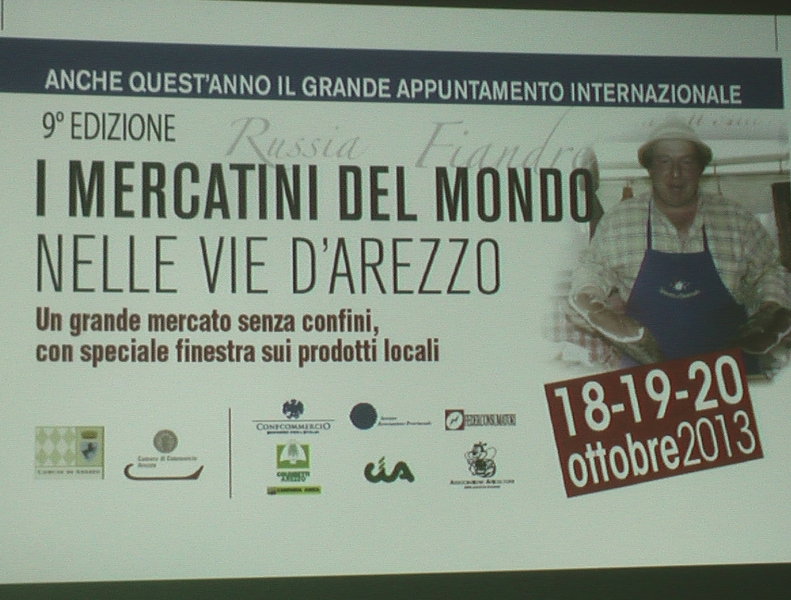 Da venerdì 18 a domenica 20 ottobre ritornano, anche quest'anno, i Mercatini del Mondo nelle vie di Arezzo . Un mercato internazionale reso possibile grazie al contributo della Confcommercio e con il patrocinio del Comune di Arezzo e la collaborazione di Federconsumatori , Cna, Coldiretti e Cia, che giunge alla sua nona edizione. Ed è già iniziato il conto alla rovescia per questa fiera di gastronomia, artigianato e folklore proveniente da tutto il mondo, che ad Arezzo mescolerà magicamente sapori e geografia.