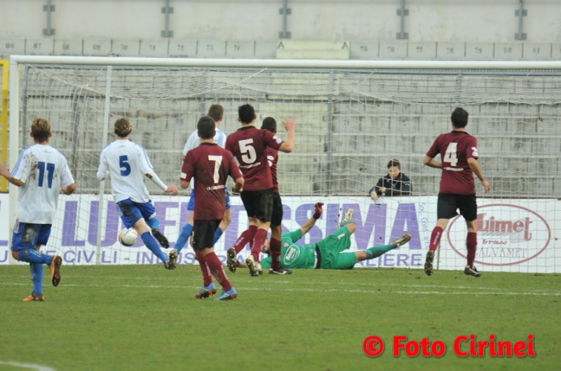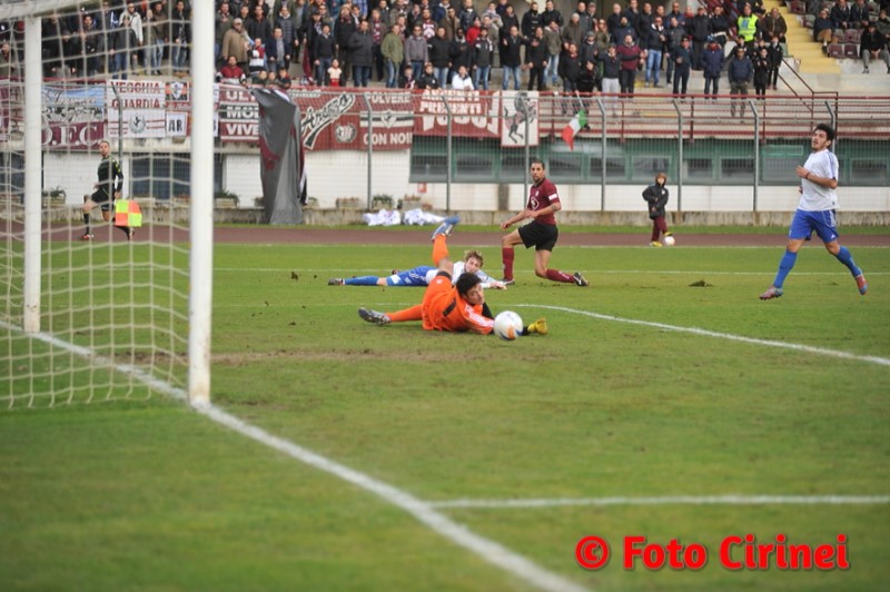 L'argentino subito pericoloso di testa su cross da sinistra di Rubechini