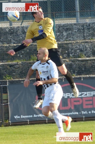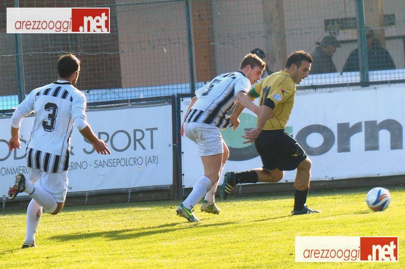 29'st SANSEPOLCRO GOL!!!: il Borgo trova il pareggio su corner con Tersini che svetta più alto di tutti in area dopo il cross di Gorini 1-1