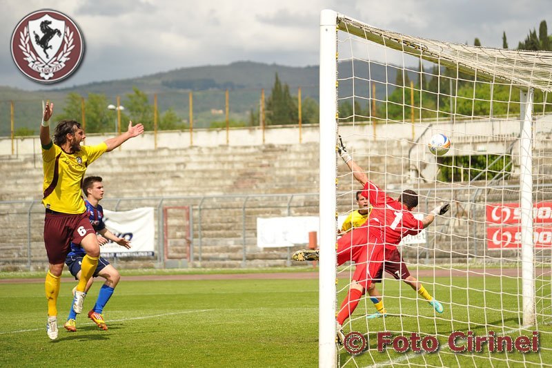 Il Lanciotto non riesce ad organizzare una reazione degna di tal nome e non impensierisce la difesa amaranto che arretra il baricentro, ma non corre pericoli. Anzi, è l’Arezzo nel finale ad andare ripetutamente vicino al 2-0. Al 75’ Zuppardo e Bianchini hanno sui piedi la palla del raddoppio, ma entrambi non inquadrano lo specchio della porta. All’86’ Zaccanti è sfortunato perché la sua conclusione scheggia la traversa.
